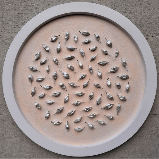 Soms is de structuur belangrijker als de kleur en worden schilderijen geheel in wit uitgevoerd, Een kenmerk van mijn schilderijen is de toepassing van vondsten uit de natuur zoals zaden, zaaddozen, noten, amandelen, boomschors, scheermesschelpen, oesters, mosselen, etc:.