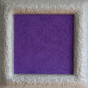 Multiplex paneel , linnen, structuurpasta en acryl , voorzien van wit houten baklijst.