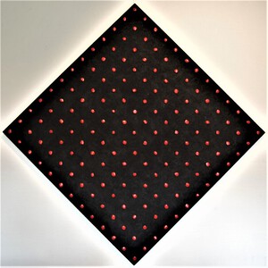Het object kan als ruit opgehangen worden, het heeft dan een hoogte en breedte van 127 cm.